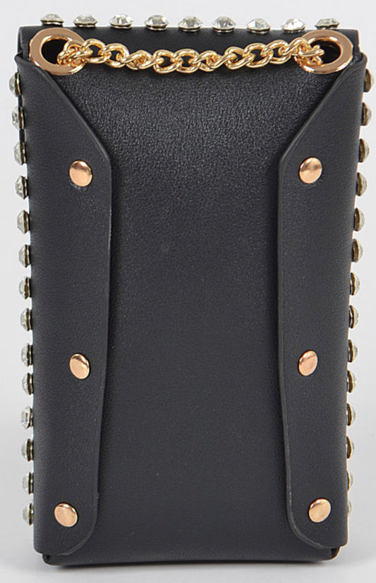 Black Rhinestones Bag With Gold Strap